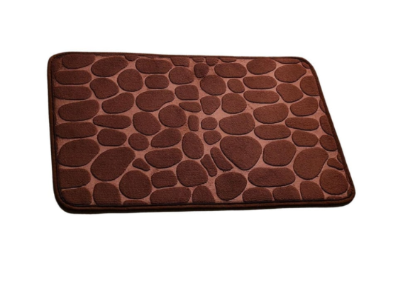 Covoras de baie din Poliester si spuma de memorie, model pietre, anti-derapant, ultra-absorbant, Maro, 60 x 40 cm