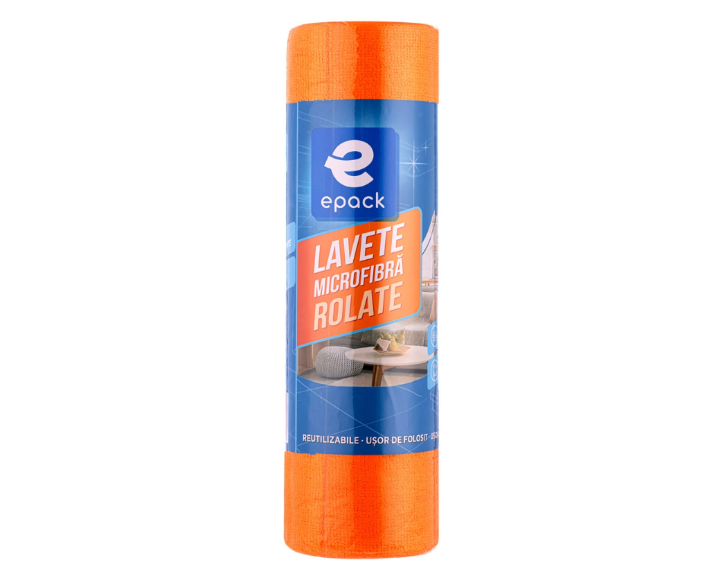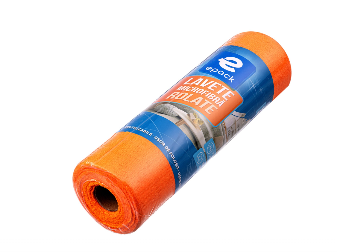 Setul de 30 de lavete din microfibră ePack, rulate pentru depozitare și utilizare ușoară, este ideal pentru curățarea eficientă a diferitelor suprafețe din locuință sau spații comerciale.
