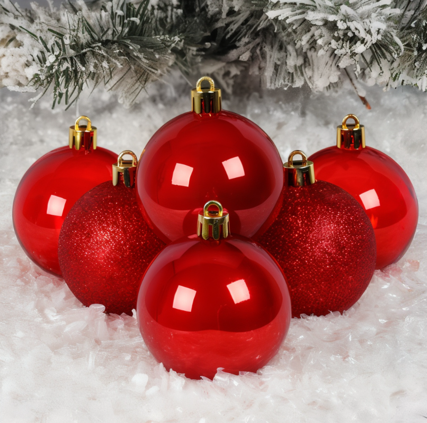 Set 6 Globulețe de Crăciun, 4 cm, Roșii