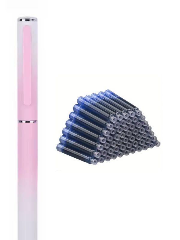 Descoperă stiloul degrade roz metalic, elegant, modern și perfect pentru școală, birou sau cadou. Pachetul include 40 de rezerve mari de cerneală, oferind o utilizare îndelungată, fără grija consumării rapide a cernelii.