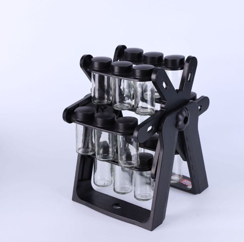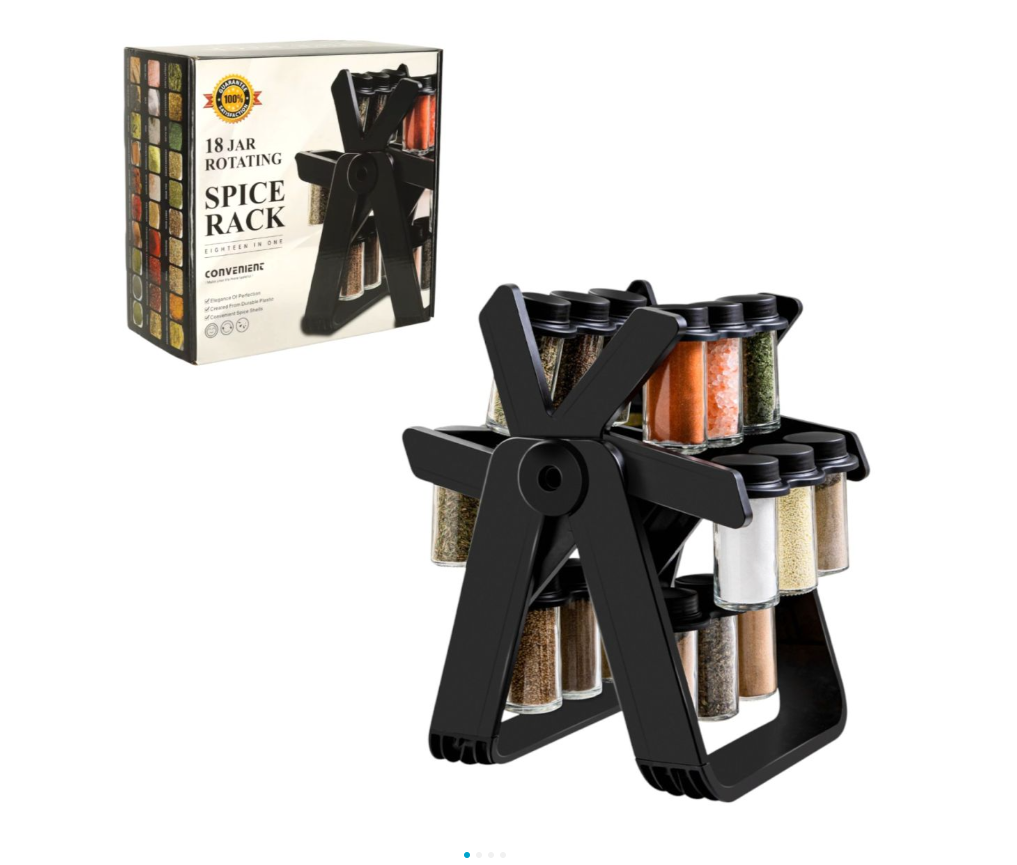 Acest suport rotativ pentru condimente cu 18 borcănele din sticlă este o alegere excelentă pentru cei care iubesc ordinea, eleganța și funcționalitatea în bucătărie. Fie că îl folosești acasă sau îl expui în magazin, adaugă un plus de stil și eficiență în organizarea condimentelor.